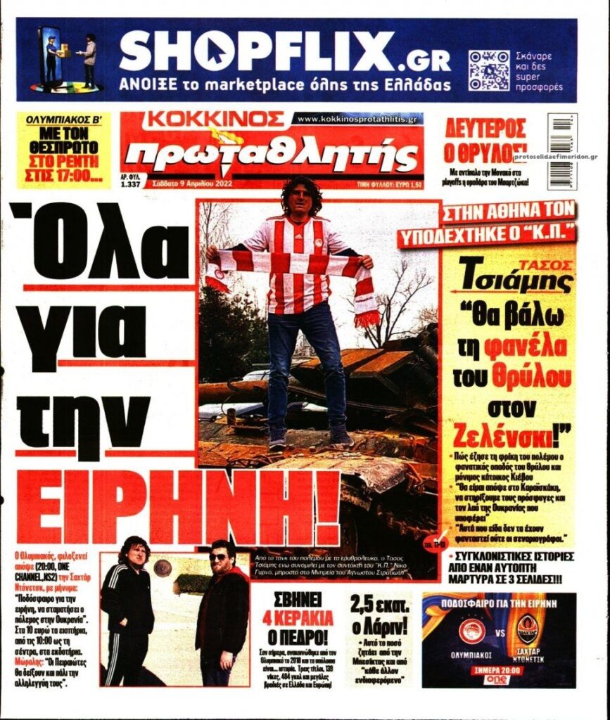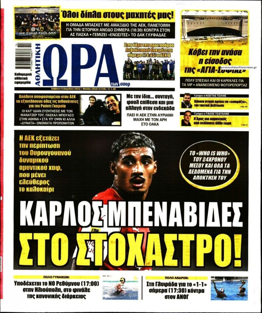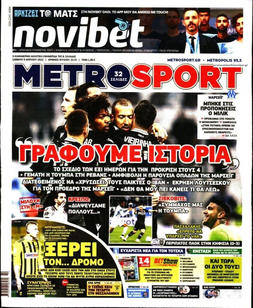 MEDIA Οι πρώτες σελίδες των αθλητικών εφημερίδων, σήμερα Σάββατο 9 Απριλίου FacebookTwitterPinterestWhatsApp Οι πρώτες σελίδες των αθλητικών εφημερίδων, σήμερα Σάββατο 9 Απριλίου
