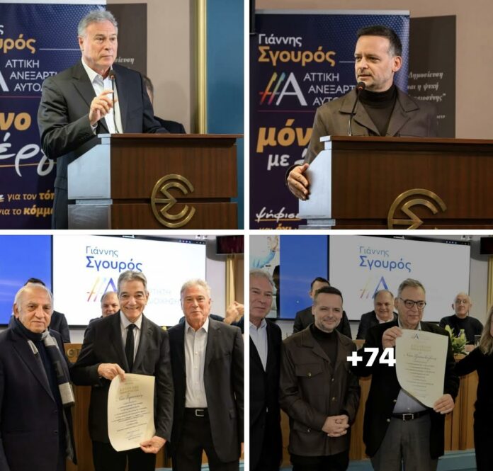 Στην ομιλία του ο επικεφαλής της παράταξης κ. Γιάννης Σγουρός αναφέρθηκε στην αδιάλειπτη παρουσία της στα κοινά, για περισσότερες από δύο δεκαετίες έχοντας πάντα το ίδιο πάθος και την ίδια αφοσίωση στον αγώνα για τη βελτίωση της ποιότητας ζωής και της καθημερινότητας των πολιτών της Περιφέρειας Αττικής χωρίς εξαρτήσεις. Ο Γιάννης Σγουρός αναφέρθηκε στο όραμα, τον σκοπό και τις αξίες της παράταξης που αποτελούν «….τη βάση μας στις μάχες που δίνουμε καθημερινά….».