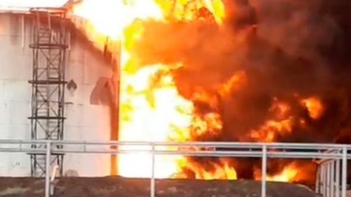 Σε βίντεο που αναρτήθηκαν σε ρωσικά μέσα κοινωνικής δικτύωσης φαίνονται μεγάλες δεξαμενές να καίγονται μέσα στη νύκτα. Το Ρόιτερς σημειώνει πως ήταν σε θέση να αναγνωρίσει την τοποθεσία ενός από τα βίντεο ως την περιοχή Καμένσκι της περιφέρειας του Ροστόφ.