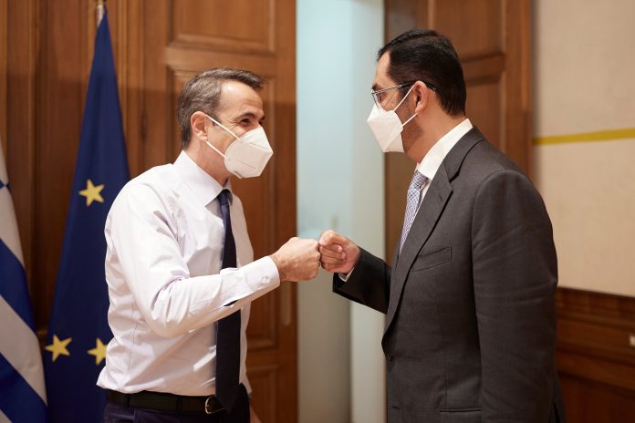 Ο πρωθυπουργός Κυριάκος Μητσοτάκης συναντήθηκε σήμερα, στο Μέγαρο Μαξίμου, με τον υπουργό Βιομηχανίας και Προηγμένης Τεχνολογίας των Ηνωμένων Αραβικών Εμιράτων, Sultan bin Ahmad Sultan Al Jaber, ο οποίος πραγματοποιεί επίσκεψη εργασίας στη χώρα μας.