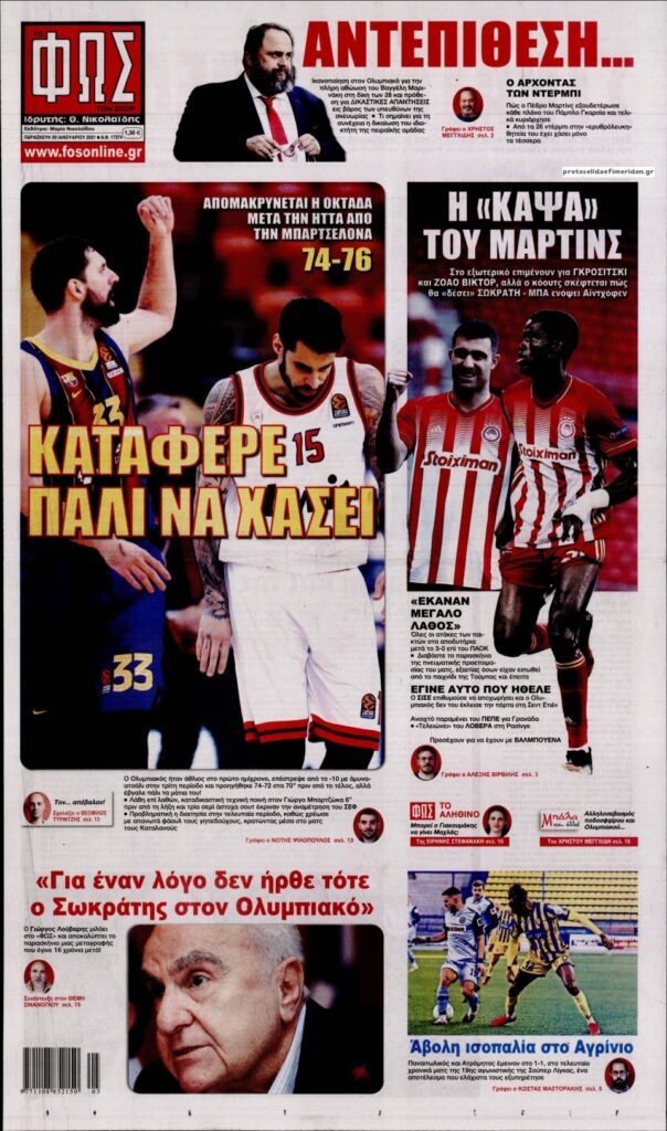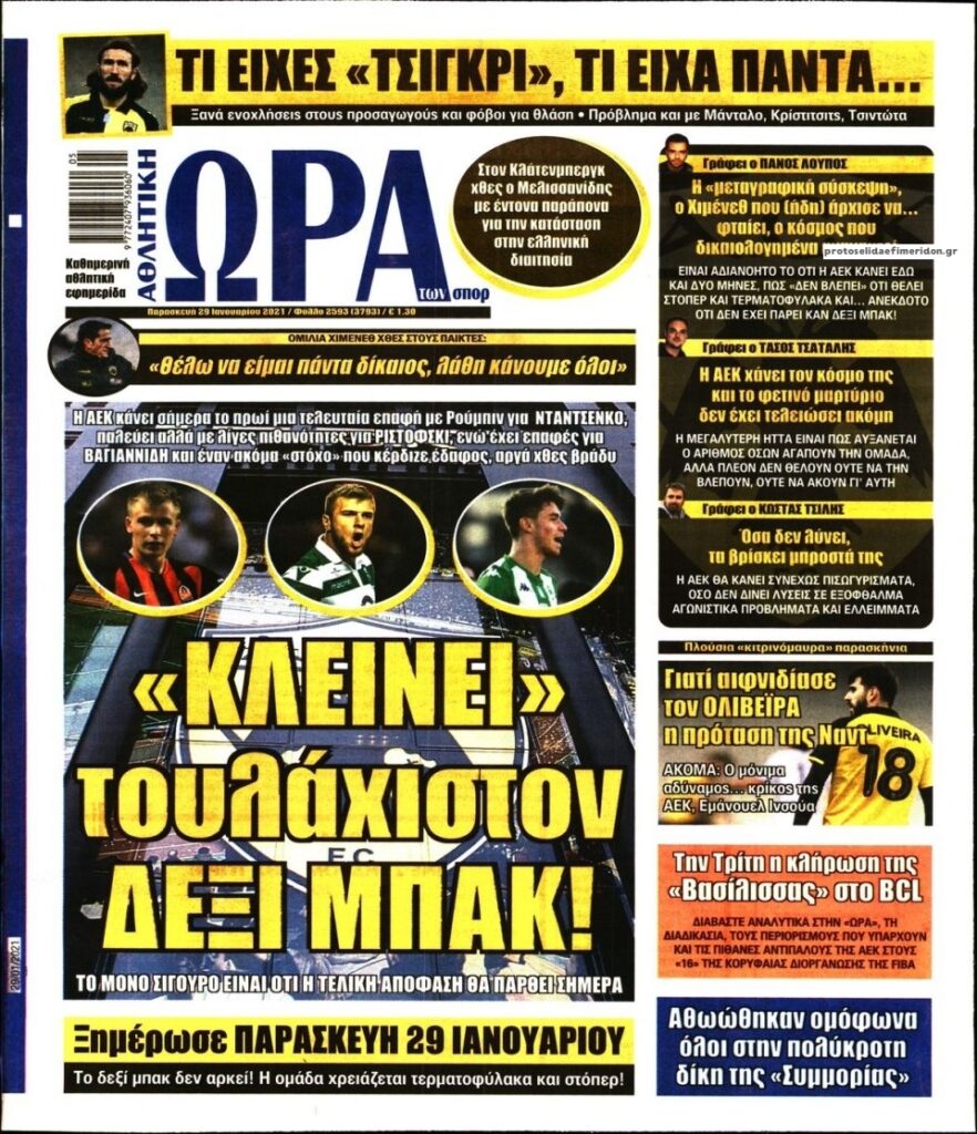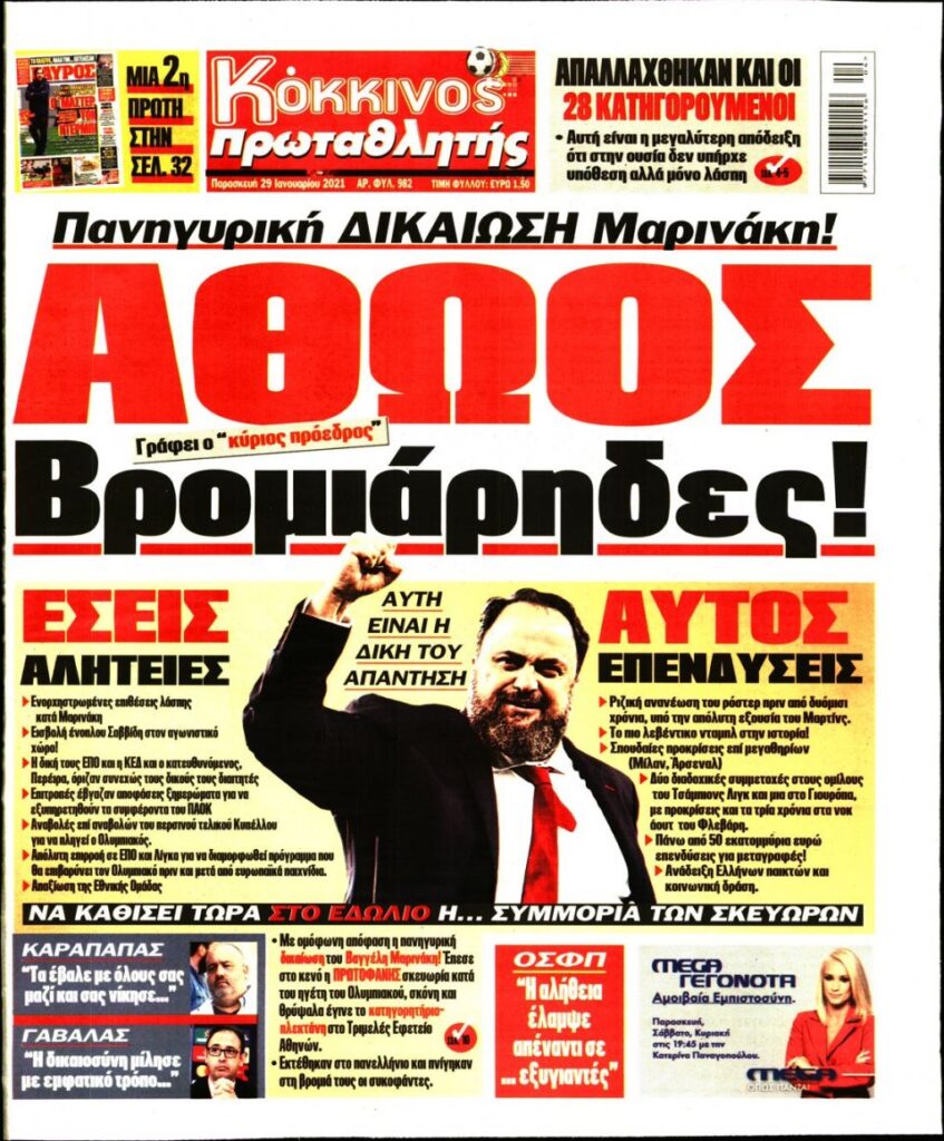 MEDIA Τα πρωτοσέλιδα των αθλητικών εφημερίδων, σήμερα Παρασκευή 29 Ιανουαρίου FacebookTwitterPinterestWhatsApp Τα πρωτοσέλιδα των αθλητικών εφημερίδων, σήμερα Παρασκευή 29 Ιανουαρίου: