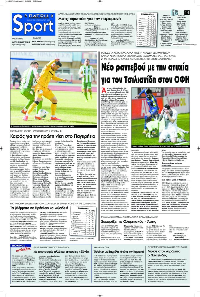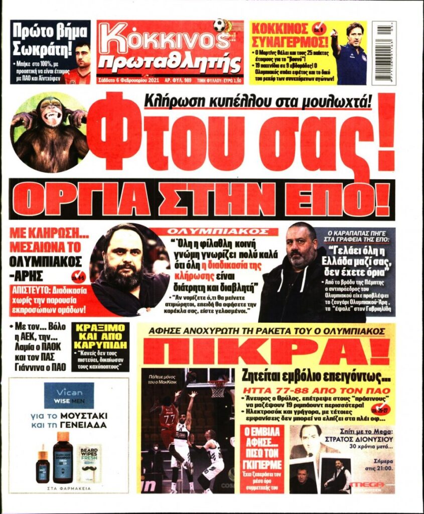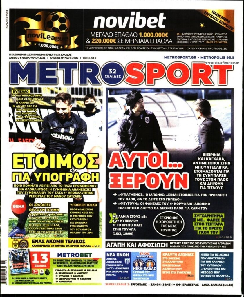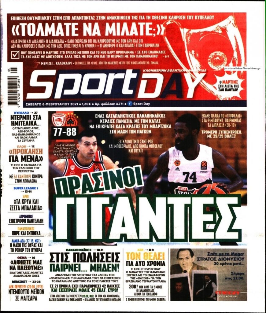 MEDIA Τα πρωτοσέλιδα των αθλητικών εφημερίδων, σήμερα Σάββατο 6 Φεβρουαρίου FacebookTwitterPinterestWhatsApp Τα πρωτοσέλιδα των αθλητικών εφημερίδων, σήμερα Σάββατο 6 Φεβρουαρίου: