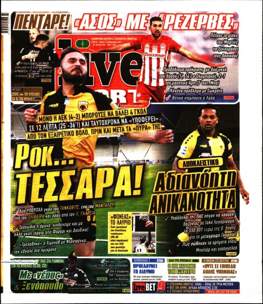 MEDIA Τα πρωτοσέλιδα των αθλητικών εφημερίδων, σήμερα Πέμπτη, 11 Φεβρουαρίου FacebookTwitterPinterestWhatsApp Τα πρωτοσέλιδα των αθλητικών εφημερίδων, σήμερα Πέμπτη, 11 Φεβρουαρίου: