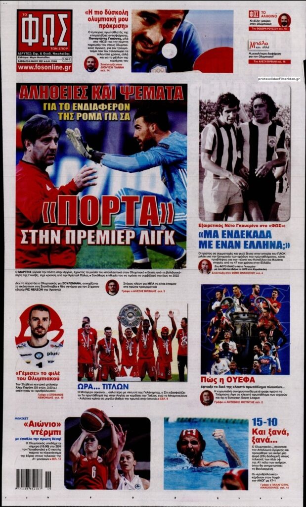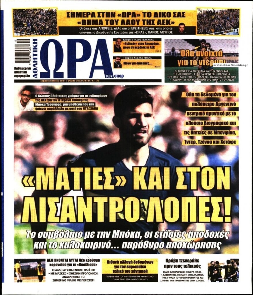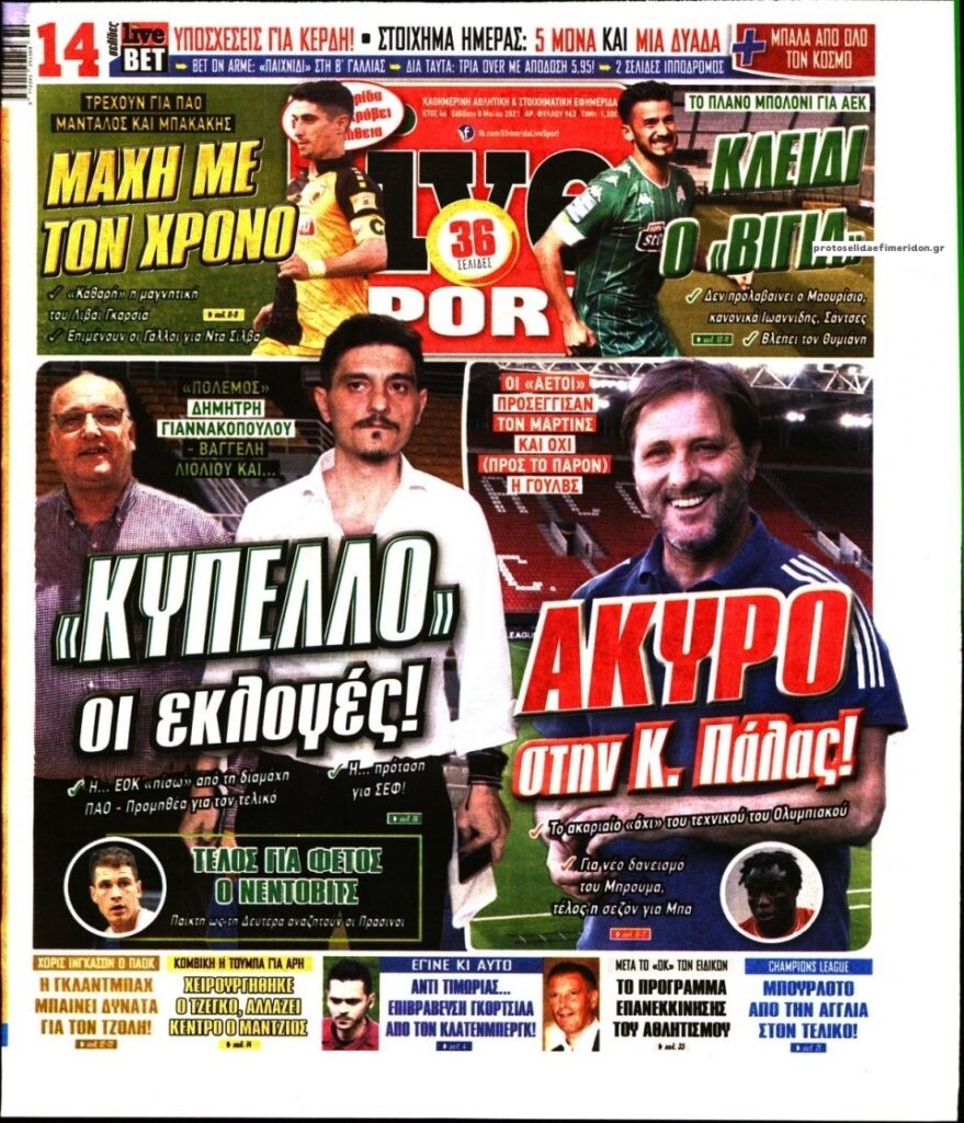 MEDIA Τα πρωτοσέλιδα των αθλητικών εφημερίδων, σήμερα Σάββατο, 8 Μαΐου FacebookTwitterPinterestWhatsApp Τα πρωτοσέλιδα των αθλητικών εφημερίδων, σήμερα Σάββατο, 8 Μαΐου: