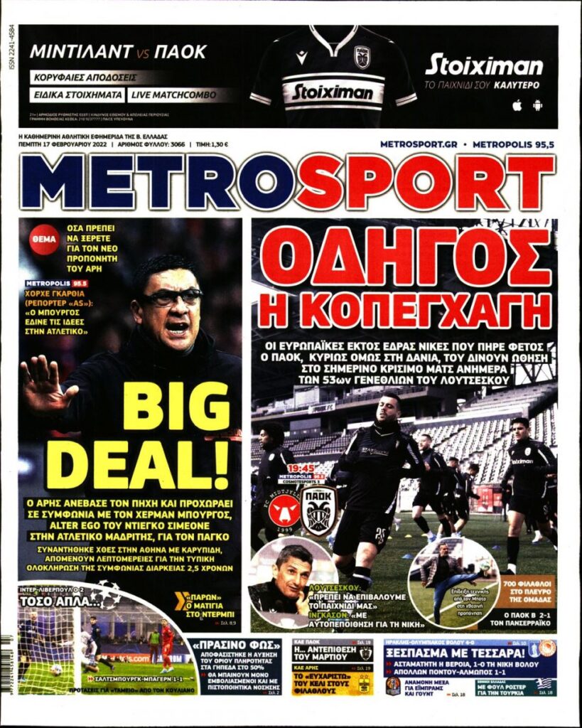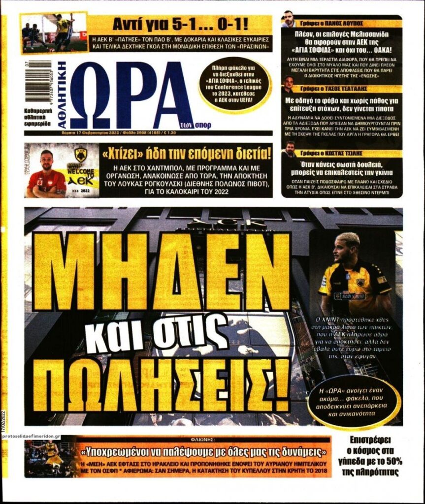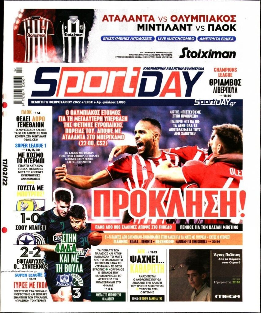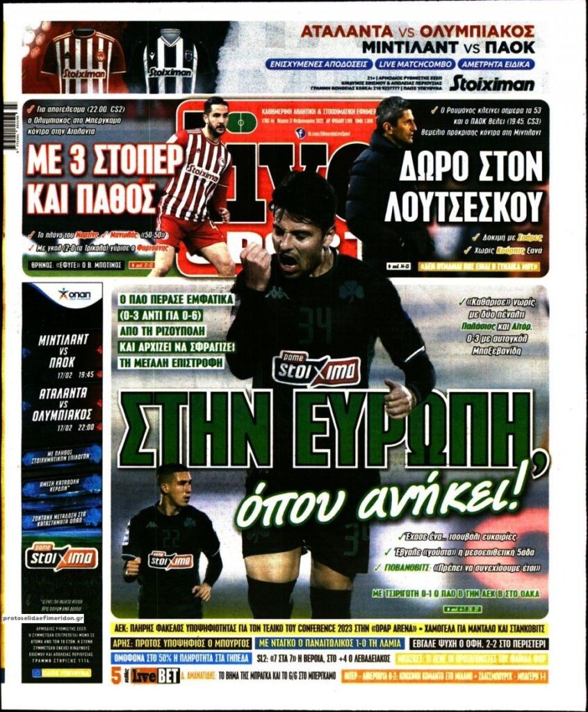 MEDIA Τα πρωτοσέλιδα των αθλητικών εφημερίδων, σήμερα Πέμπτη 17 Φεβρουαρίου FacebookTwitterPinterestWhatsApp Τα πρωτοσέλιδα των αθλητικών εφημερίδων, σήμερα Πέμπτη 17 Φεβρουαρίου