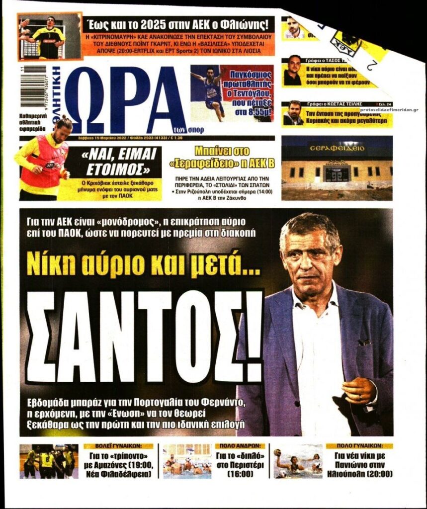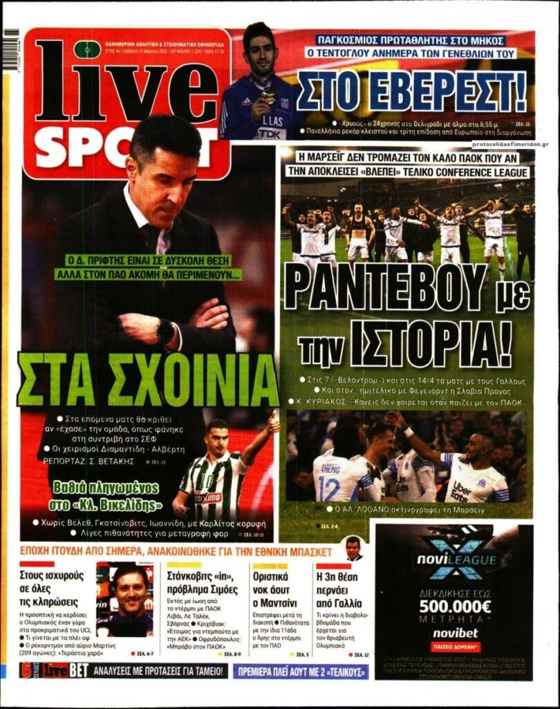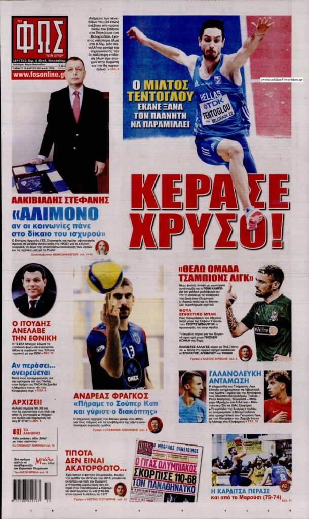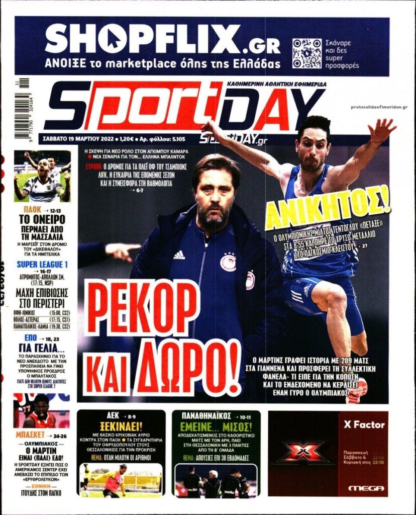 MEDIA Τα πρωτοσέλιδα των αθλητικών εφημερίδων, σήμερα Σάββατο 19 Μαρτίου FacebookTwitterPinterestWhatsApp Τα πρωτοσέλιδα των αθλητικών εφημερίδων, σήμερα Σάββατο 19 Μαρτίου