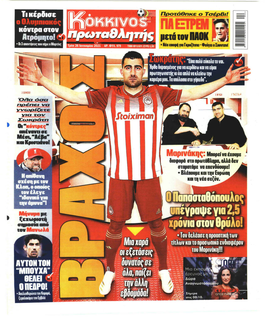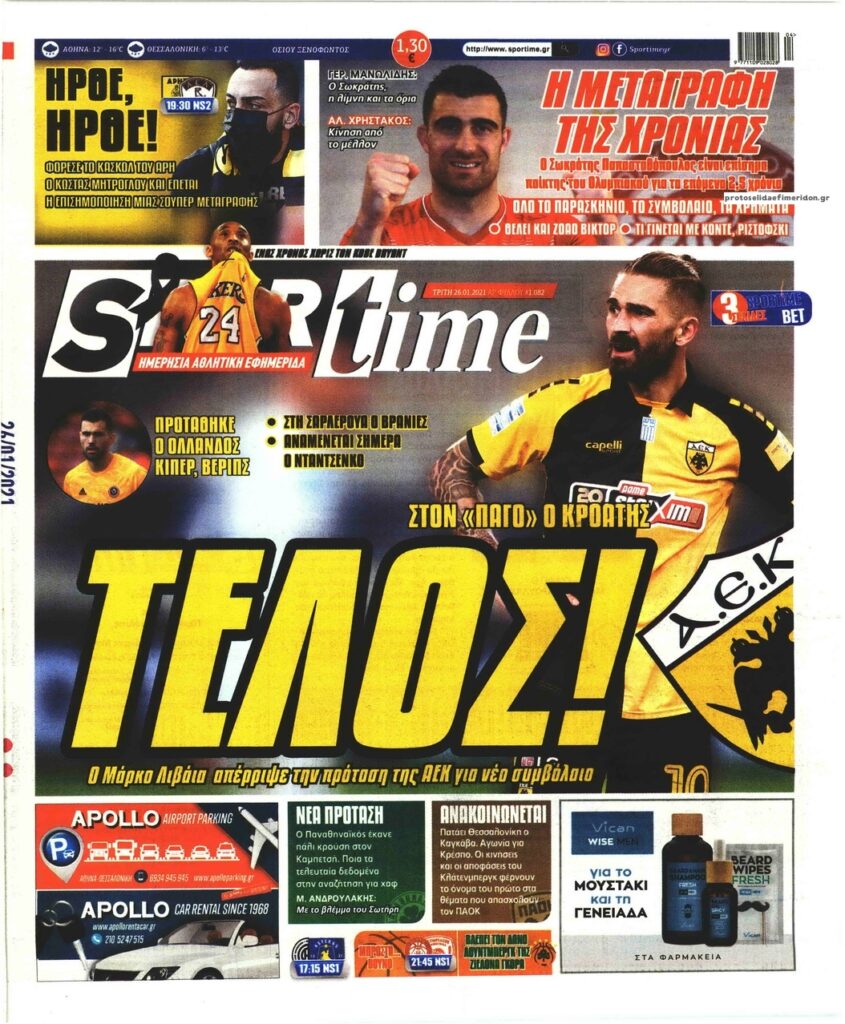 MEDIA Τα πρωτοσέλιδα των αθλητικών εφημερίδων, σήμερα Τρίτη 26 Ιανουαρίου FacebookTwitterPinterestWhatsApp Τα πρωτοσέλιδα των αθλητικών εφημερίδων, σήμερα Τρίτη 26 Ιανουαρίου: