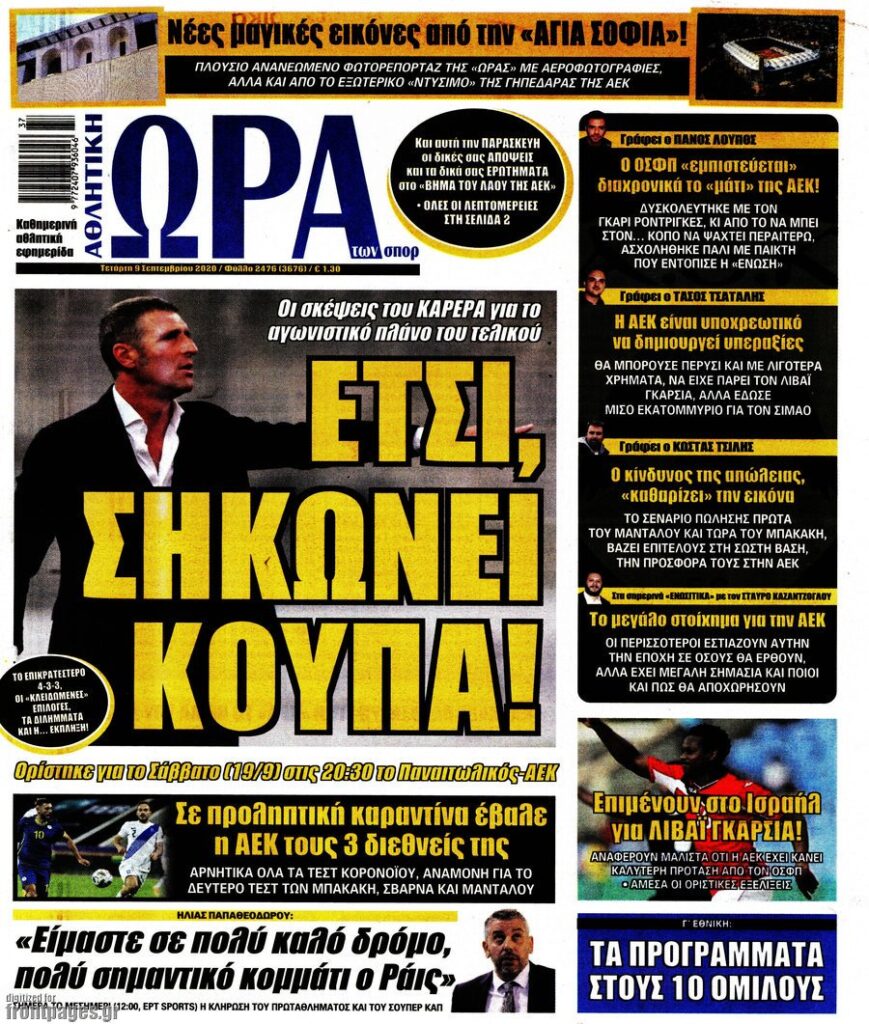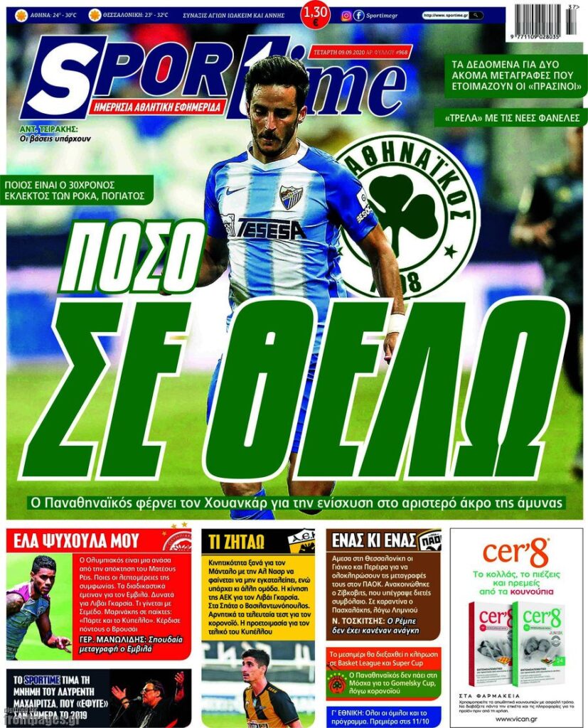 MEDIA Oι πρώτες σελίδες των αθλητικών εφημερίδων, σήμερα Tετάρτη 9 Σεπτεμβρίου FacebookTwitterPinterestWhatsApp Oι πρώτες σελίδες των αθλητικών εφημερίδων, σήμερα Tετάρτη 9 Σεπτεμβρίου: