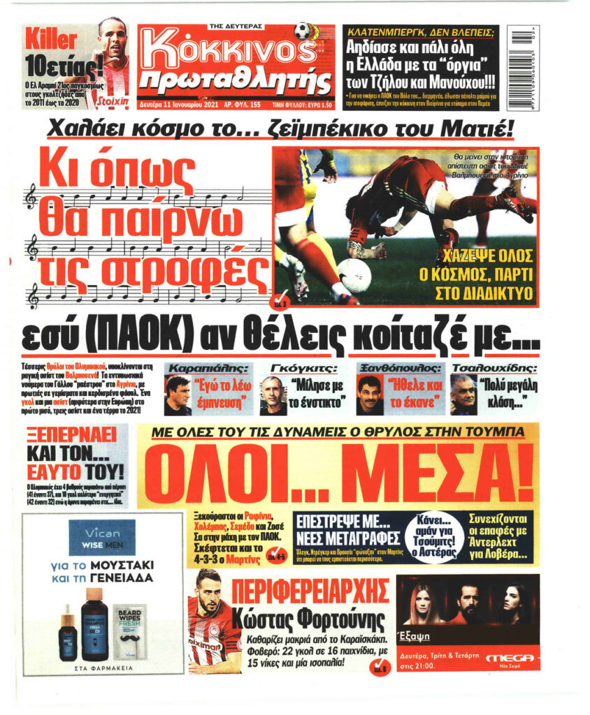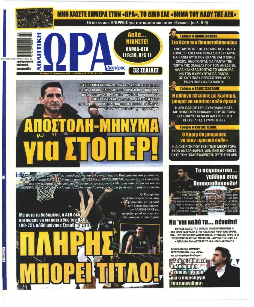 MEDIA Oι πρώτες σελίδες των αθλητικών εφημερίδων, σήμερα Δευτέρα 11 Ιανουαρίου FacebookTwitterPinterestWhatsApp Oι πρώτες σελίδες των αθλητικών εφημερίδων, σήμερα Δευτέρα 11 Ιανουαρίου: