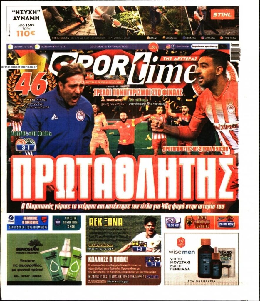 MEDIA Oι πρώτες σελίδες των αθλητικών εφημερίδων, σήμερα 12 Απριλίου FacebookTwitterPinterestWhatsApp Oι πρώτες σελίδες των αθλητικών εφημερίδων, σήμερα 12 Απριλίου: