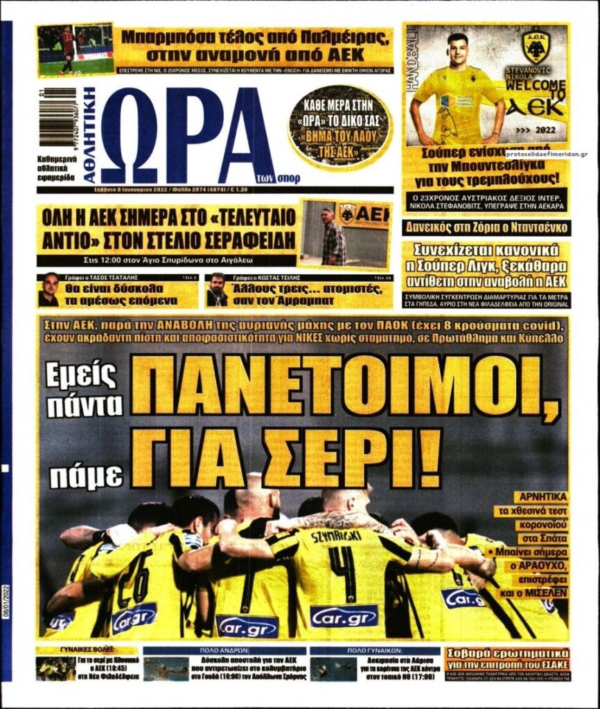 MEDIA Oι πρώτες σελίδες των αθλητικών εφημερίδων, σήμερα Σάββατο 8 Ιανουαρίου FacebookTwitterPinterestWhatsApp Oι πρώτες σελίδες των αθλητικών εφημερίδων, σήμερα Σάββατο 8 Ιανουαρίου