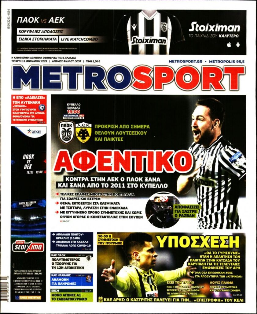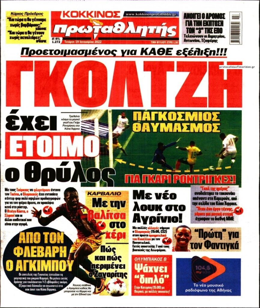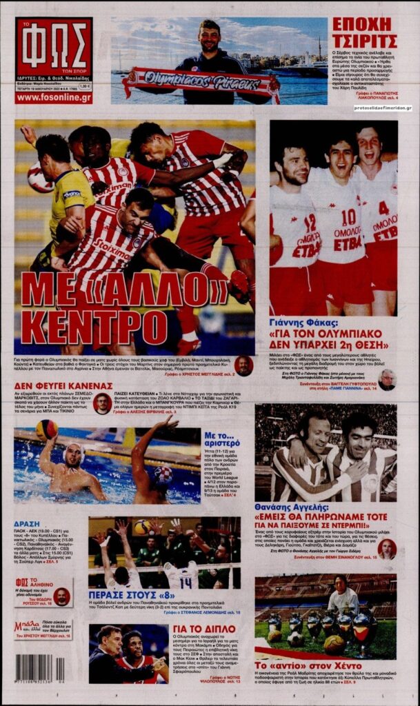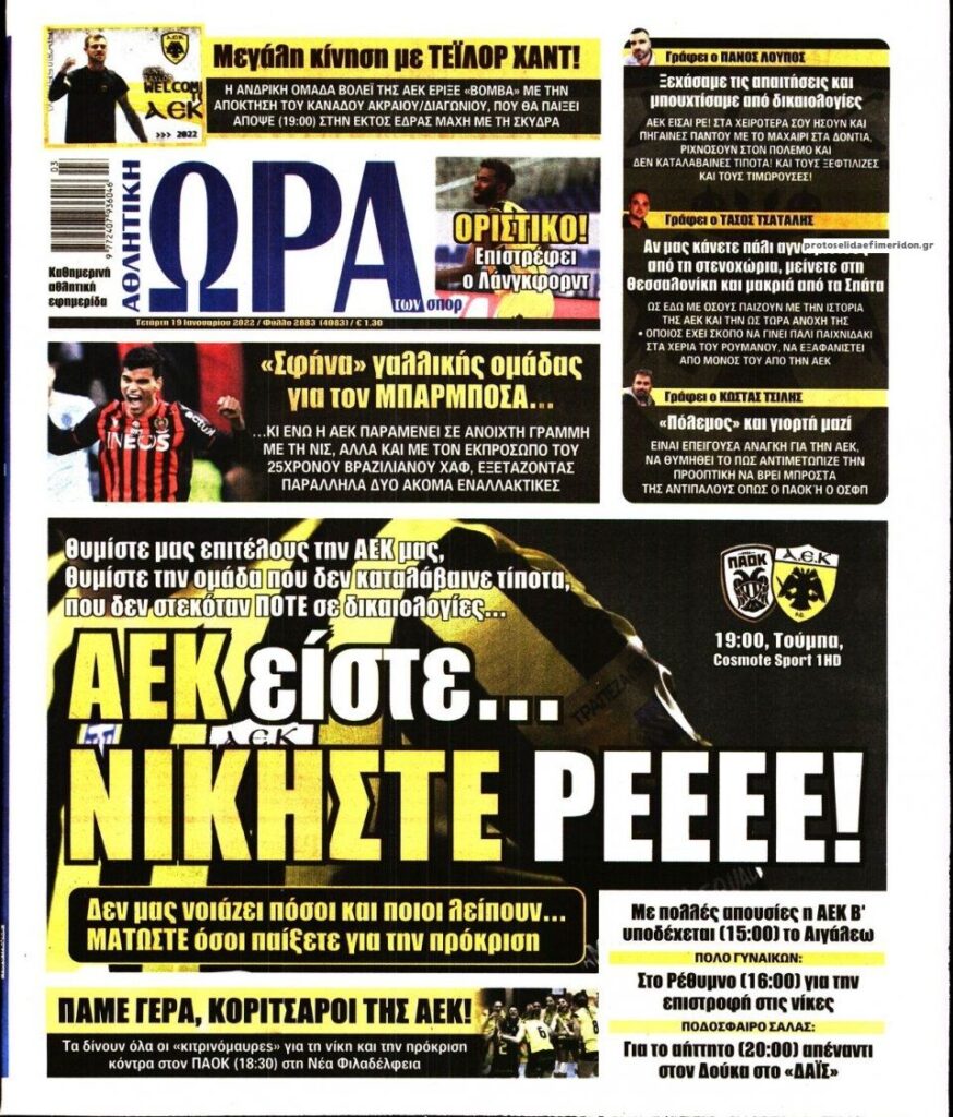 MEDIA Oι πρώτες σελίδες των αθλητικών εφημερίδων, σήμερα Τετάρτη 19 Ιανουαρίου FacebookTwitterPinterestWhatsApp Oι πρώτες σελίδες των αθλητικών εφημερίδων, σήμερα Τετάρτη 19 Ιανουαρίου