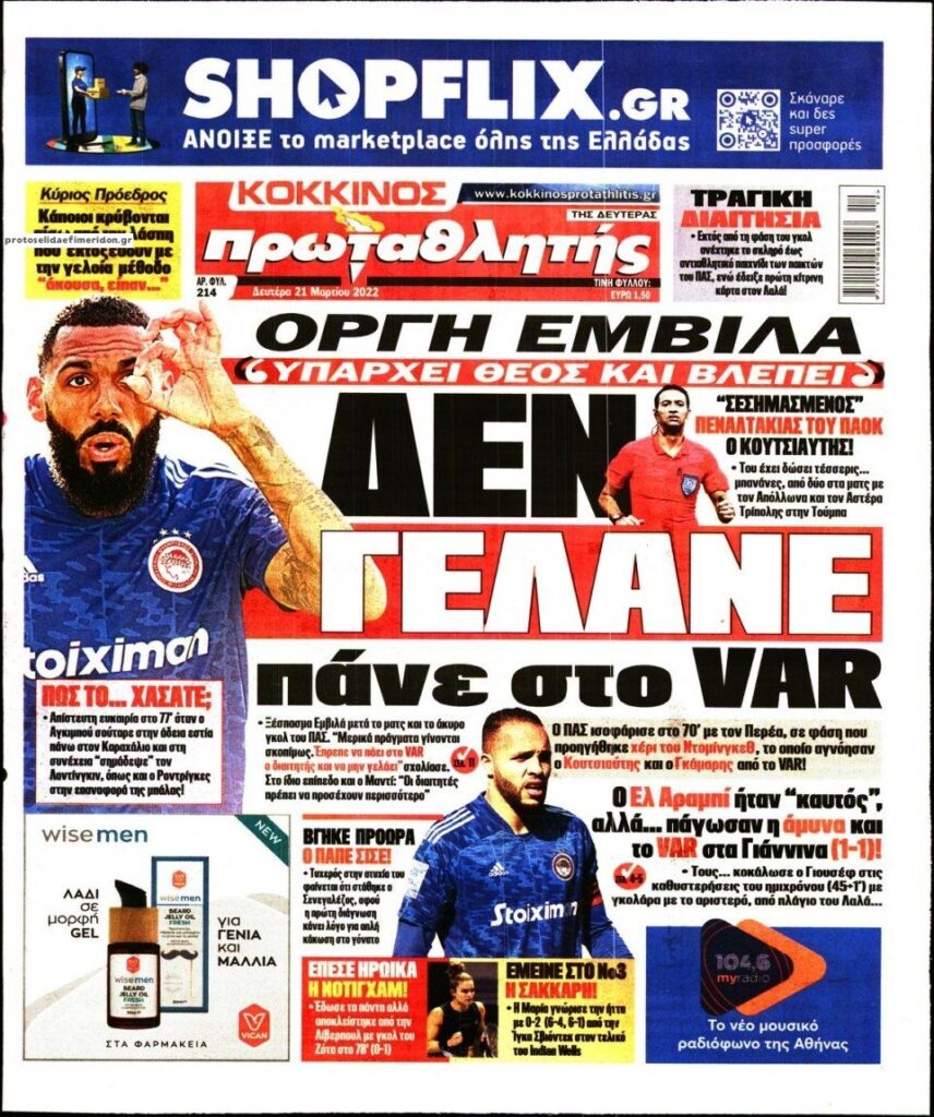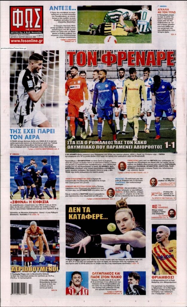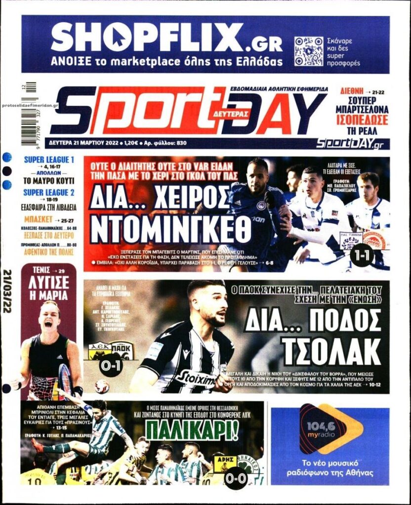 MEDIA Oι πρώτες σελίδες των αθλητικών εφημερίδων, σήμερα Δευτέρα 21 Μαρτίου FacebookTwitterPinterestWhatsApp Oι πρώτες σελίδες των αθλητικών εφημερίδων, σήμερα Δευτέρα 21 Μαρτίου