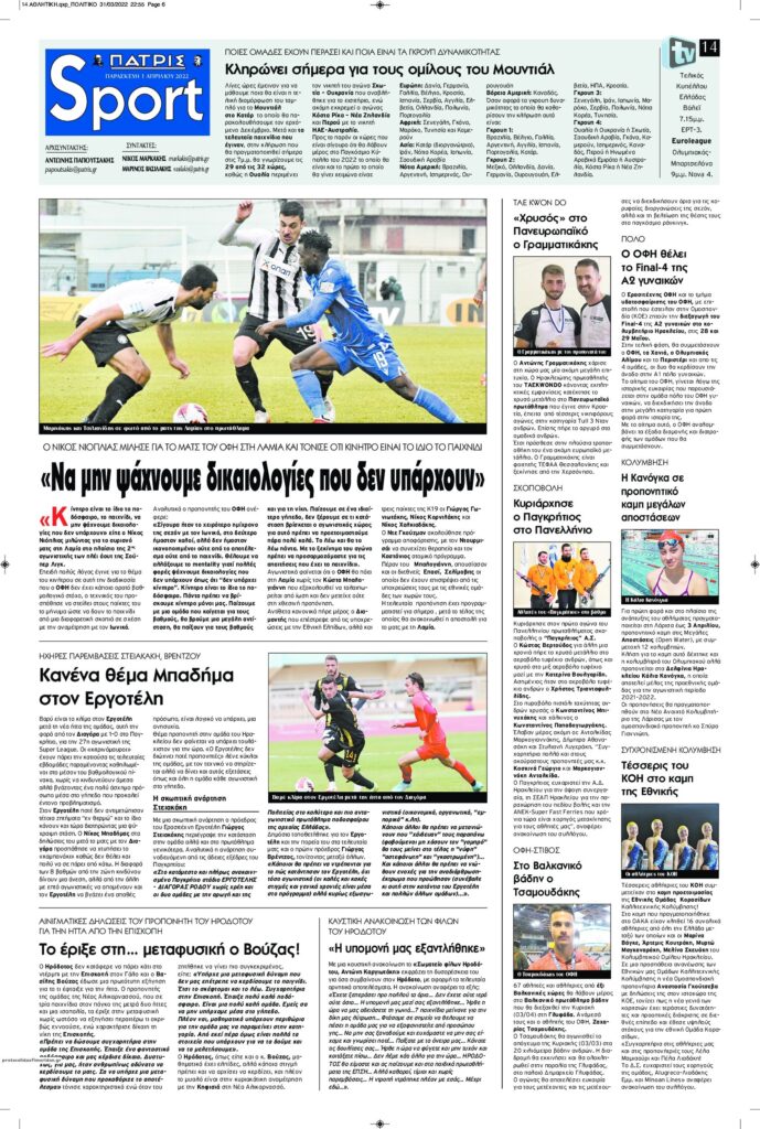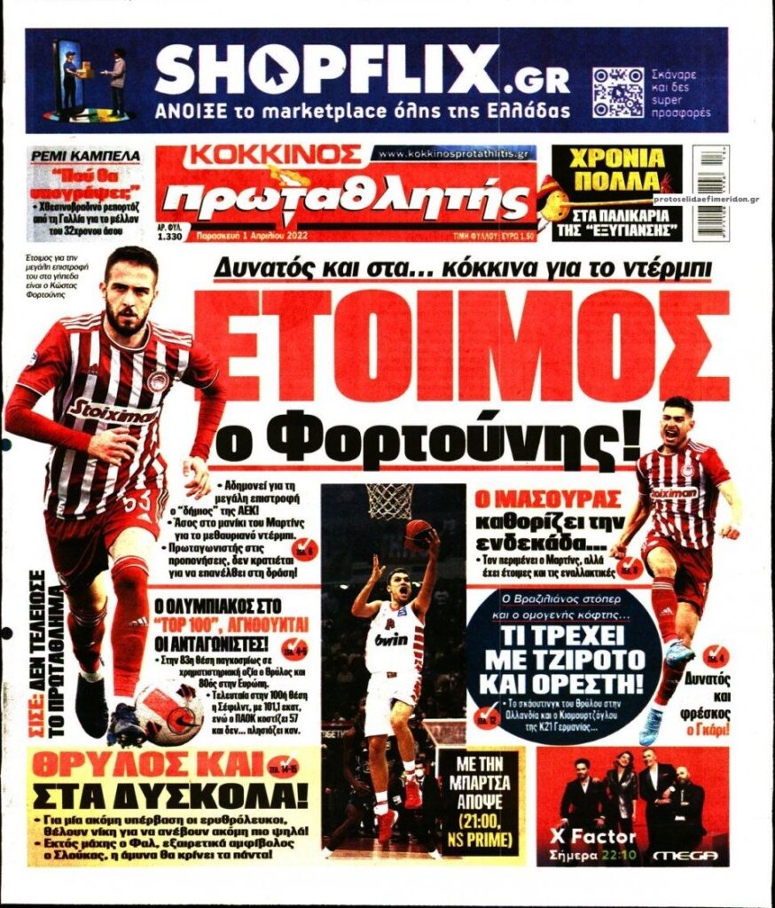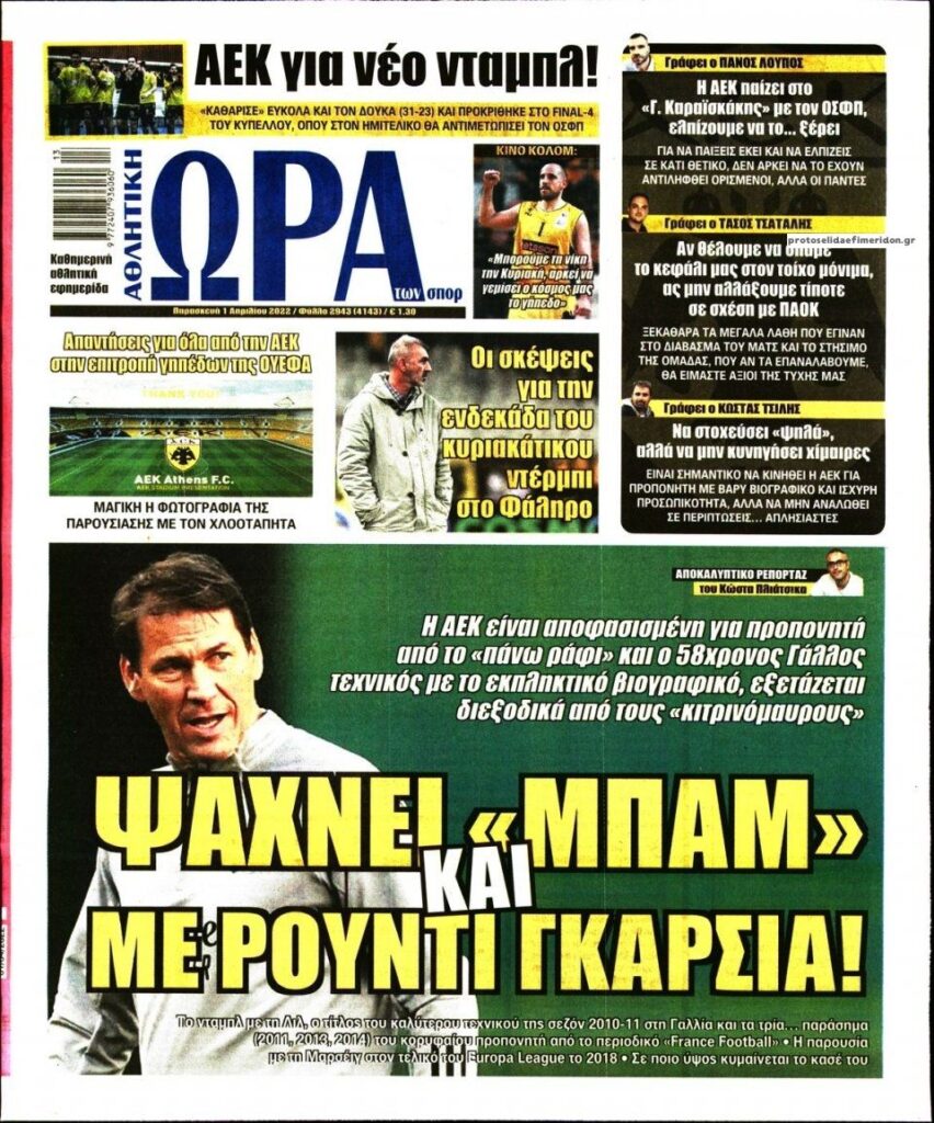 MEDIA Oι πρώτες σελίδες των αθλητικών εφημερίδων, σήμερα Παρασκευή 1η Απριλίου FacebookTwitterPinterestWhatsApp Oι πρώτες σελίδες των αθλητικών εφημερίδων, σήμερα Παρασκευή 1η Απριλίου