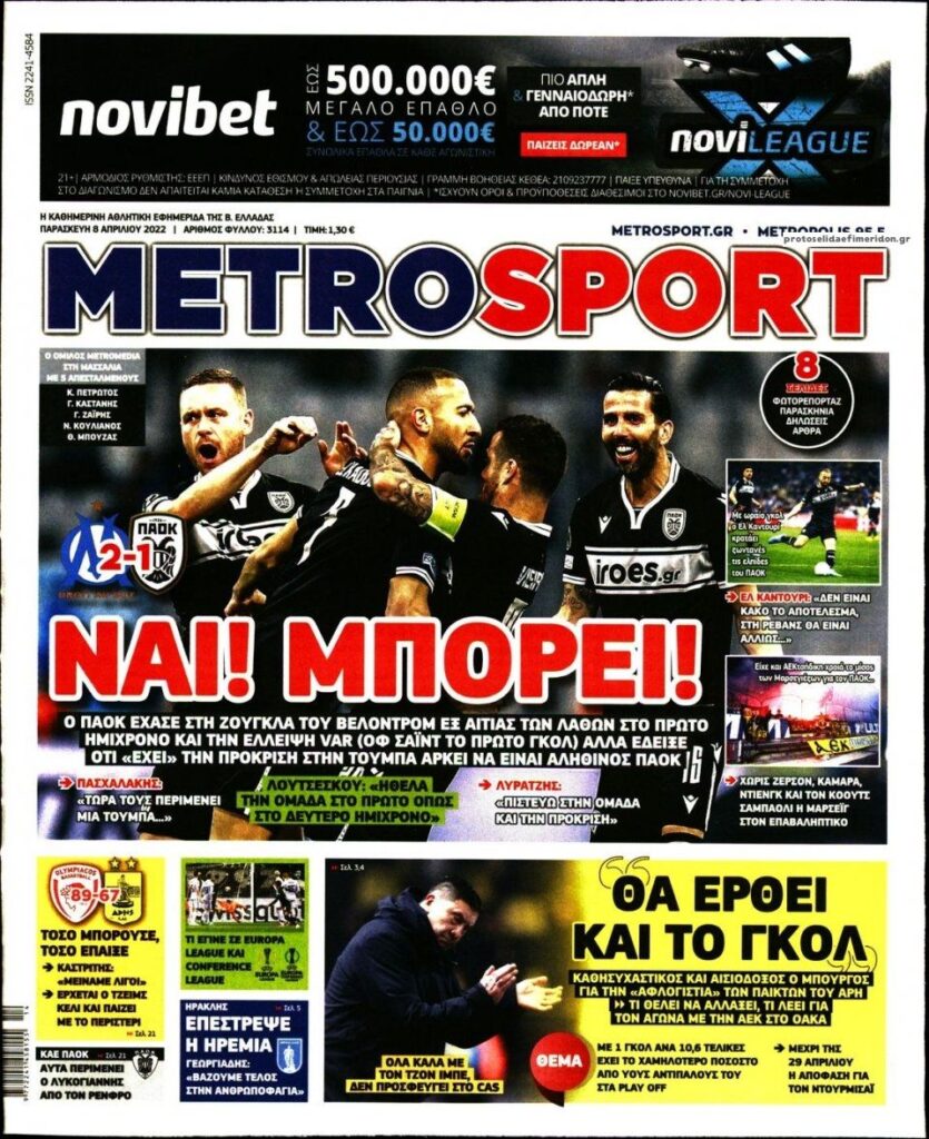 MEDIA Oι πρώτες σελίδες των αθλητικών εφημερίδων, σήμερα Παρασκευή 8 Απριλίου FacebookTwitterPinterestWhatsApp Oι πρώτες σελίδες των αθλητικών εφημερίδων, σήμερα Παρασκευή 8 Απριλίου