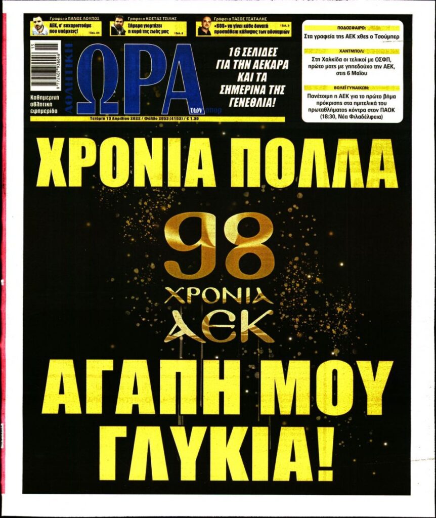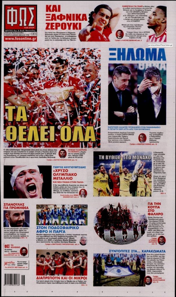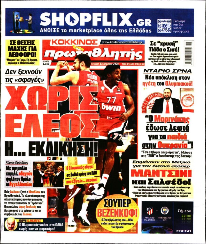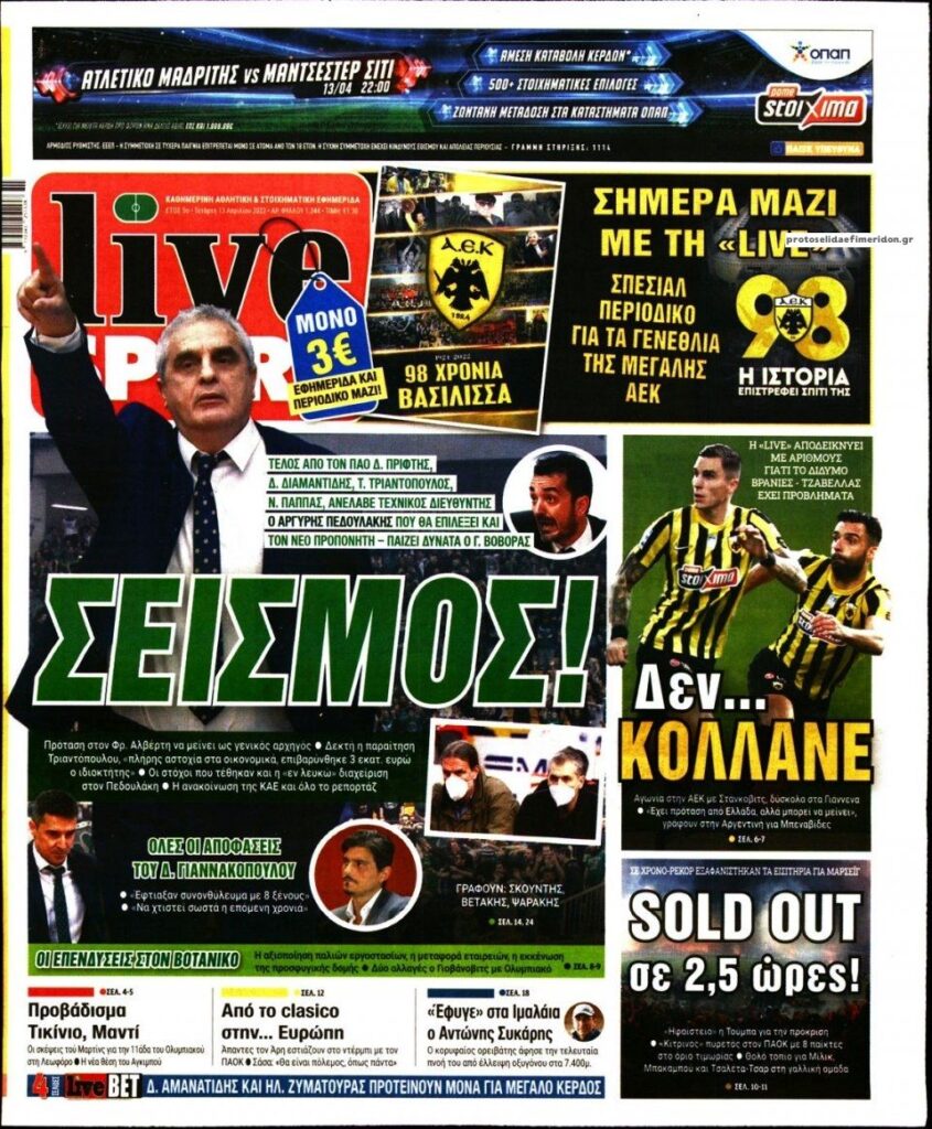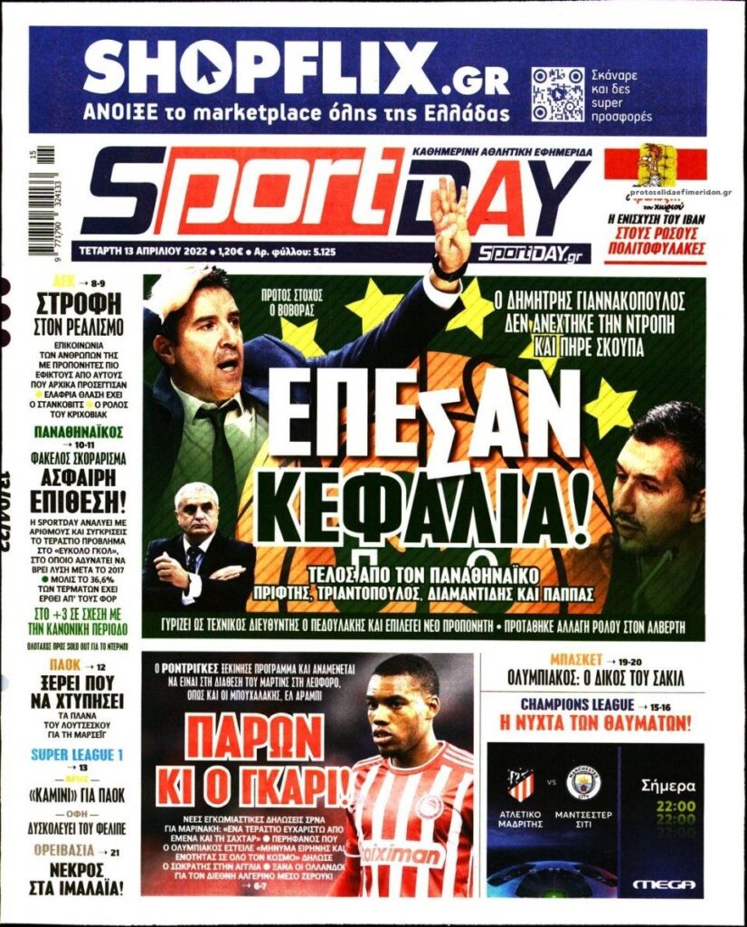 MEDIA Oι πρώτες σελίδες των αθλητικών εφημερίδων, σήμερα Τετάρτη 13 Απριλίου FacebookTwitterPinterestWhatsApp Oι πρώτες σελίδες των αθλητικών εφημερίδων, σήμερα Τετάρτη 13 Απριλίου