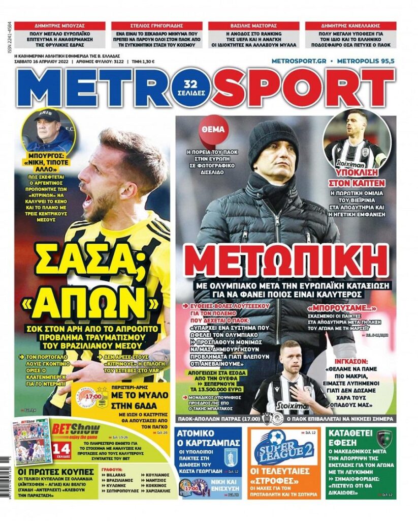 MEDIA Oι πρώτες σελίδες των αθλητικών εφημερίδων, σήμερα Σάββατο 16 Απριλίου FacebookTwitterPinterestWhatsApp Oι πρώτες σελίδες των αθλητικών εφημερίδων, σήμερα Σάββατο 16 Απριλίου