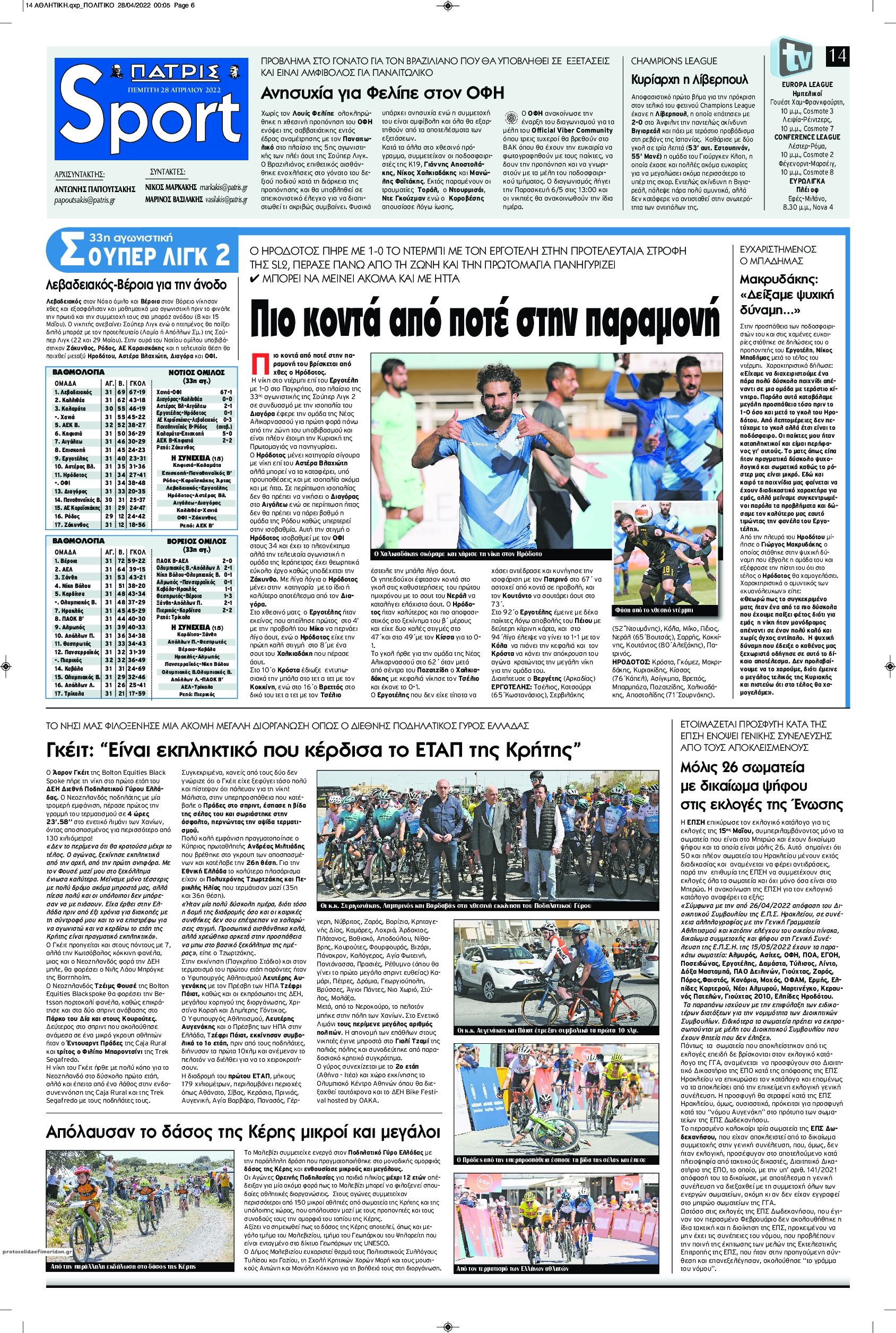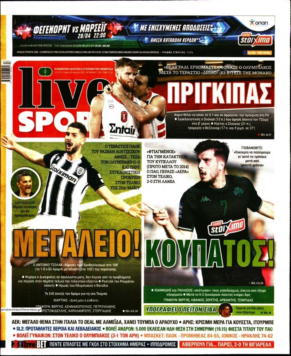 MEDIA Oι πρώτες σελίδες των αθλητικών εφημερίδων, σήμερα Πέμπτη 28 Απριλίου FacebookTwitterPinterestWhatsApp Oι πρώτες σελίδες των αθλητικών εφημερίδων, σήμερα Πέμπτη 28 Απριλίου
