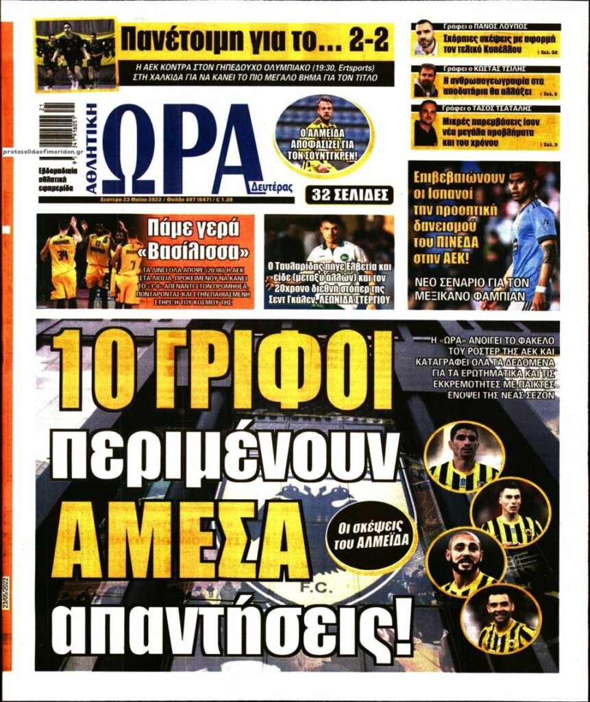 MEDIA Oι πρώτες σελίδες των αθλητικών εφημερίδων, σήμερα Δευτέρα 23 Μαΐου FacebookTwitterPinterestWhatsApp Oι πρώτες σελίδες των αθλητικών εφημερίδων, σήμερα Δευτέρα 23 Μαΐου