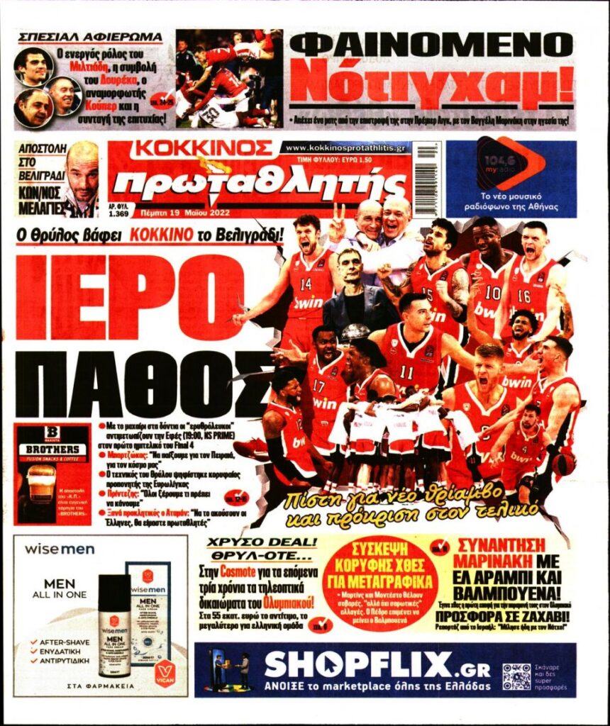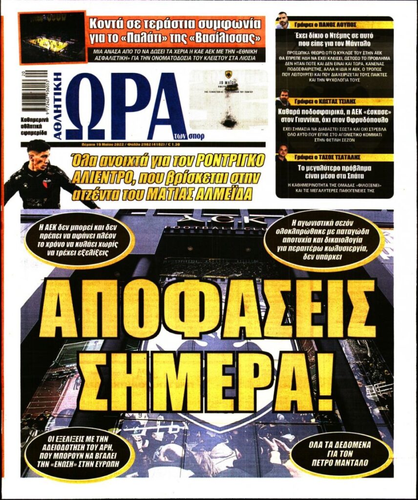 MEDIA Tα αθλητικά πρωτοσέλιδα, σήμερα Πέμπτη 19 Μαΐου FacebookTwitterPinterestWhatsApp Tα αθλητικά πρωτοσέλιδα, σήμερα Πέμπτη 19 Μαΐου